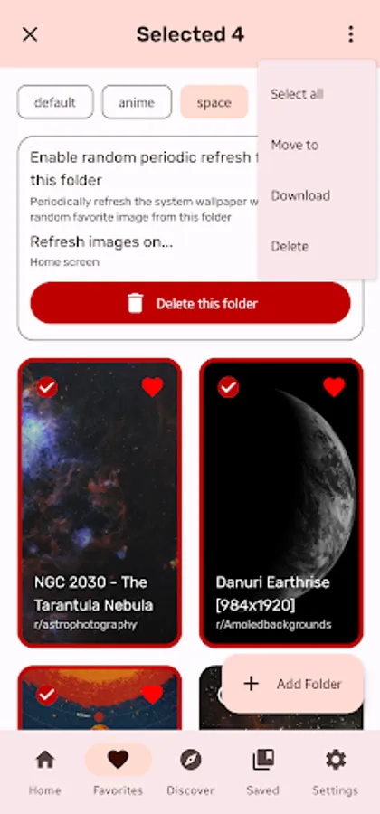 - Enable periodic refresh of favorite images so that your wallpaper is changed periodically to a random image from your favorites