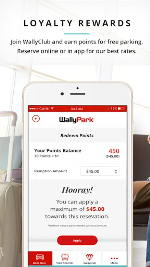 Join our WallyClub loyalty program for free and save more. Earn points toward free parking. Just use the app to sign up for WallyClub or sign into your existing account! You can also track shuttles, text for pickup and manage you reservations/profile. Our shuttles run continuously 24/7/365. Check out our affordable rates and convenient service today – and remember, Great Trips Begin and End at WallyPark!