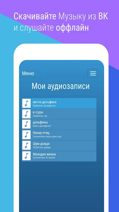 Downloading music from VK is now prohibited, but the situation may change and VK music offline will be available for you in our application.