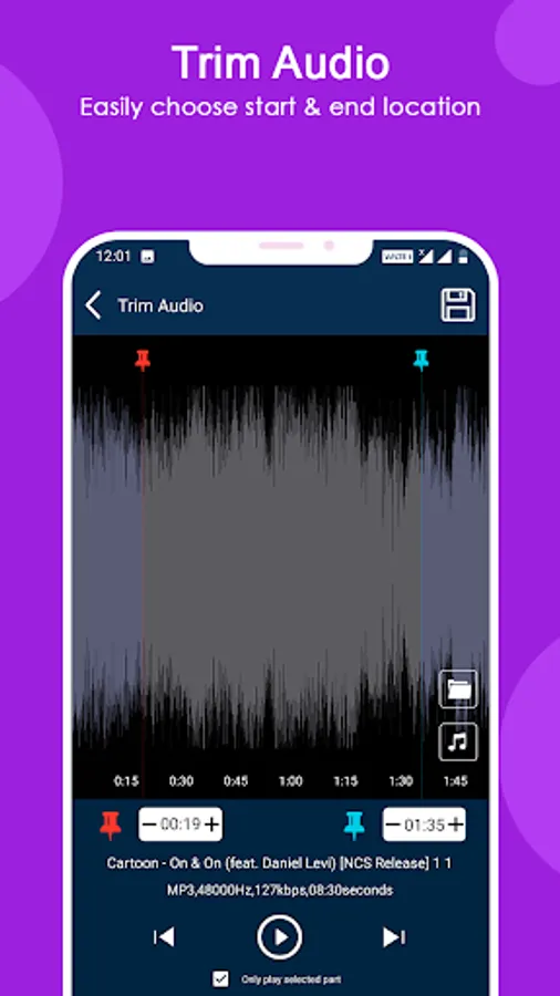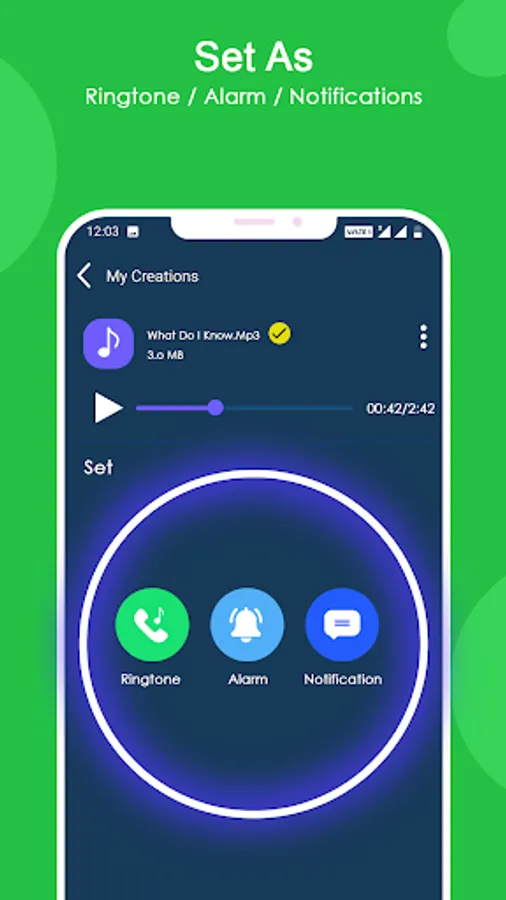 Set as Ringtone, Alarm, Notification, Caller Tune :- Come and explore what this audio MP3 cutter can bring to you! Go to set a unique ringtone directly for family members and friends. Download audio music editor to release your creativity! Easy to manage as caller tune.