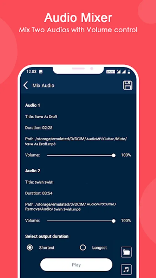 ★ Music mixer: With our mixer you can mix audio of two songs to create remixes and mashups.