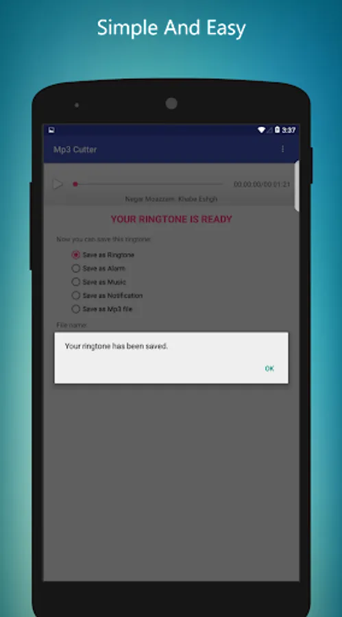 This app gives you great opportunities to edit (Cut) your mp3 and set it up as a ringtone or alarm or notification.