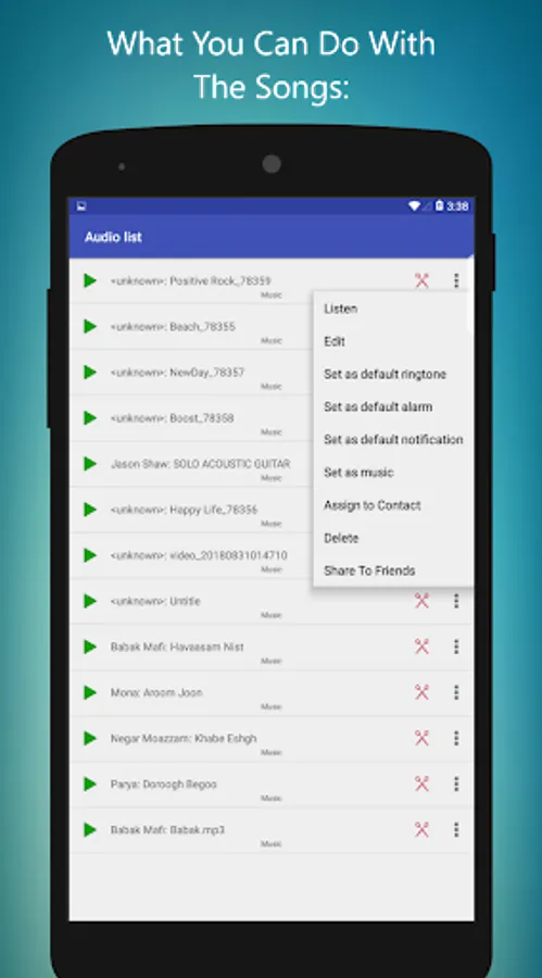 Easily Make Ringtones app helps you create your own ringtones and choose it as ringtones or even share them with your friends.