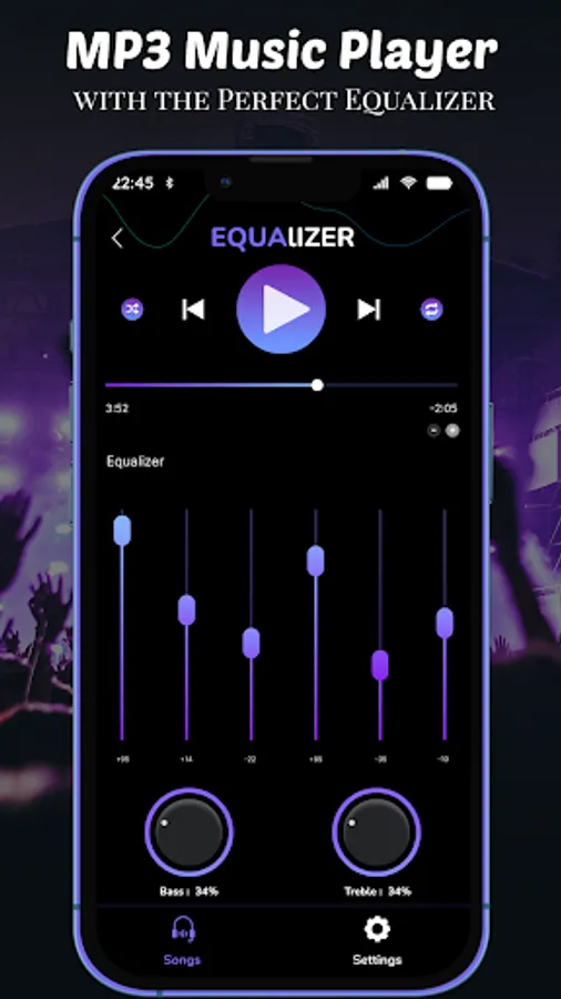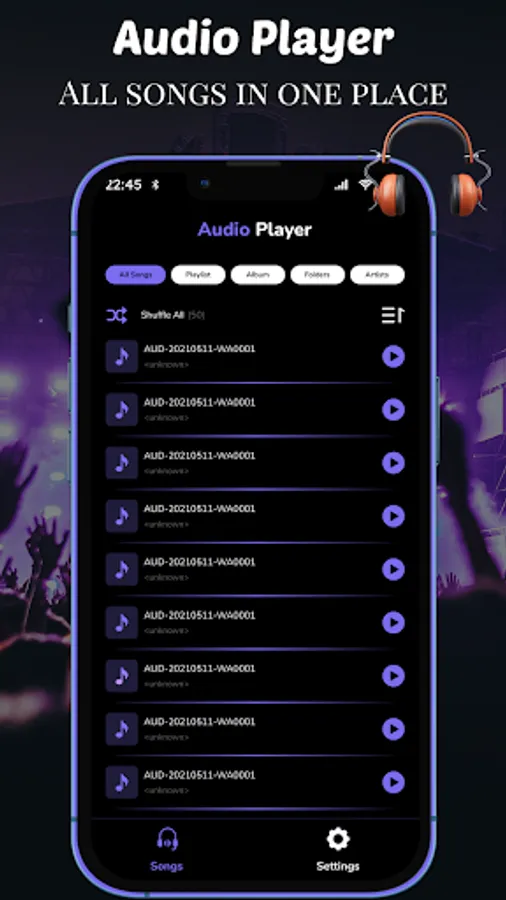 Experience clear sound quality with this "MP3 Play Audio Music" app. Play MP3 audio songs using this Audio Music Player that transports you directly into the heart of your favorite tracks. Whether a music aficionado or a lover of great tunes, this "Offline Music Audio Player" app delivers unparalleled auditory delight.