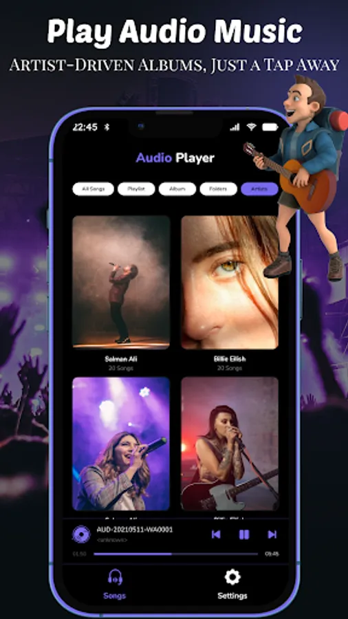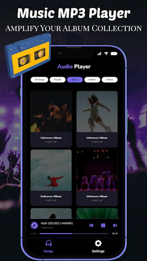 🎵 Mp3 Song Player shows all your music and audio files in the music album library.