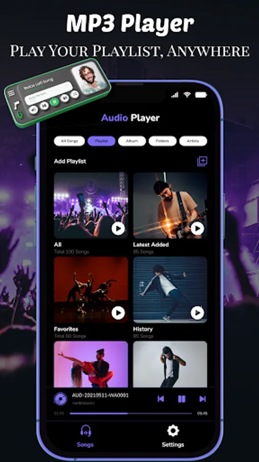 The “MP3 Media Player-Playing Music” app is designed for you to elevate your music experience to new heights. The "Music Mp3 Player: Audio Music" app is the perfect MP3 Media Player for your Smartphone. The “MP3 Media Player - Play Music” app will guide you to find all the music on your phone easily. Play Audio Music - MP3 Player manages all of your music libraries and MP3 playlist easily. Offline Music Audio Player gives you a high-quality sound and a better music experience. You can play music files in all formats with this Audio Music Player.
