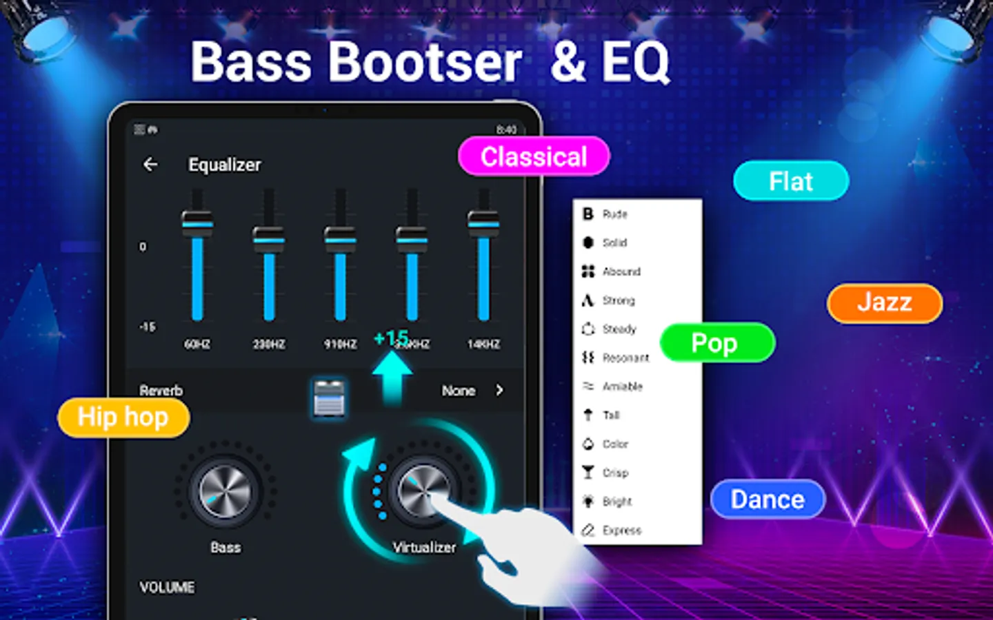 * 20+ Equalizer presets for your choice: Normal, Heavy, Rock, Dance, Flat, Jazz, Pop, Hip Hop, Folk, R&B, and etc