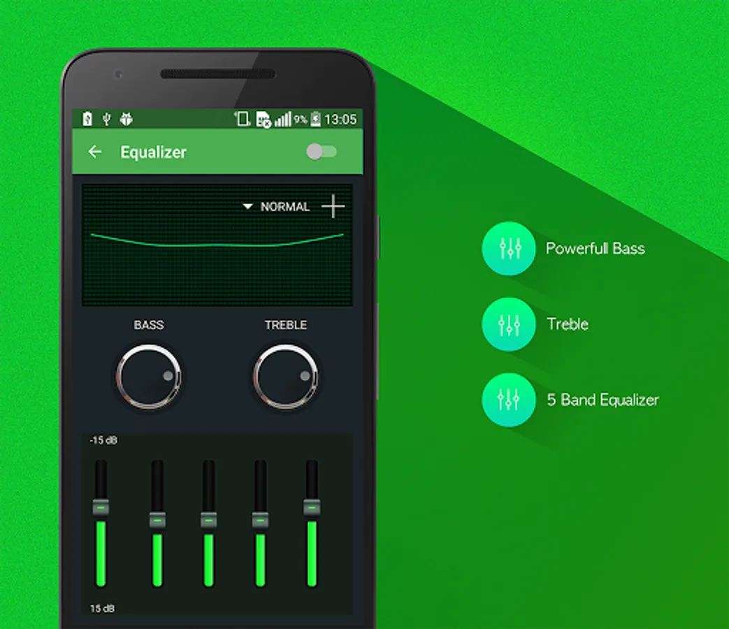 - 5 band graphic equalizer