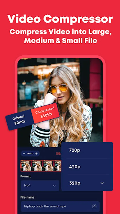 ✦ Quickly compress your video within your desired quality. Reduce the size of the video by changing its quality level.