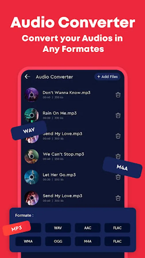 ✦ Video to Audio Converter for extracting the sound from your videos in three formats: MP3, AAC, and FLAC.