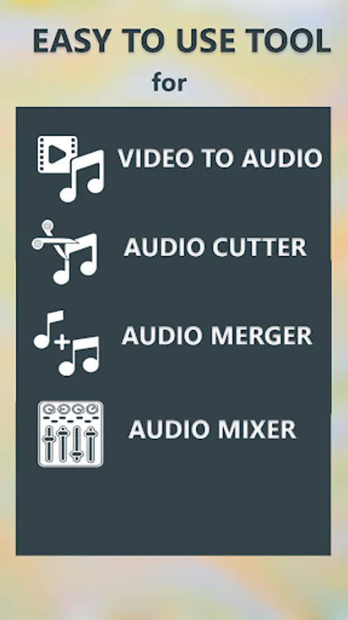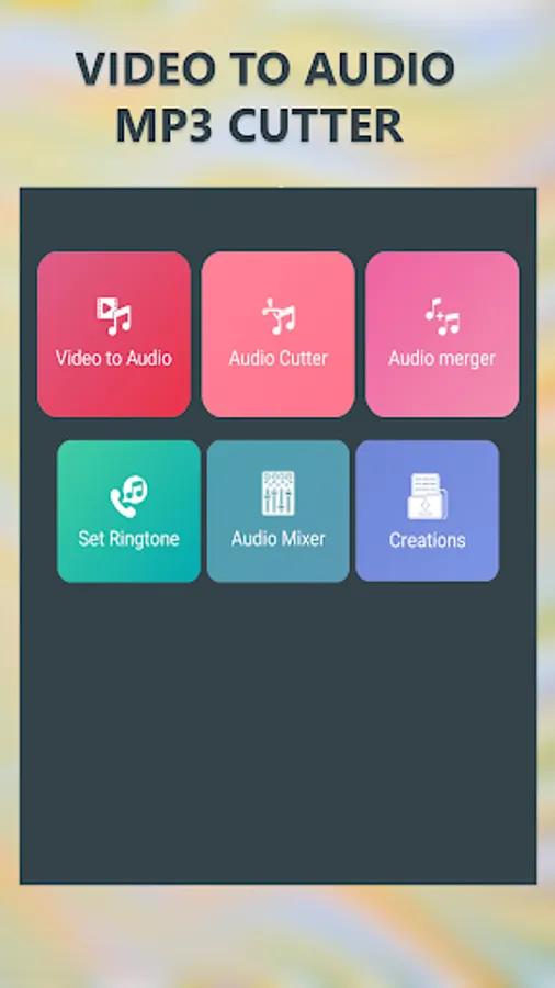 One tap touch to get audio Mp3 music from any video format you want, cut audio, merge multiple audio files in one touch, mix two audio files in an easy and convenient way to create your own ringtone for free in a few seconds. Convert musical videos to mp3 audio format.