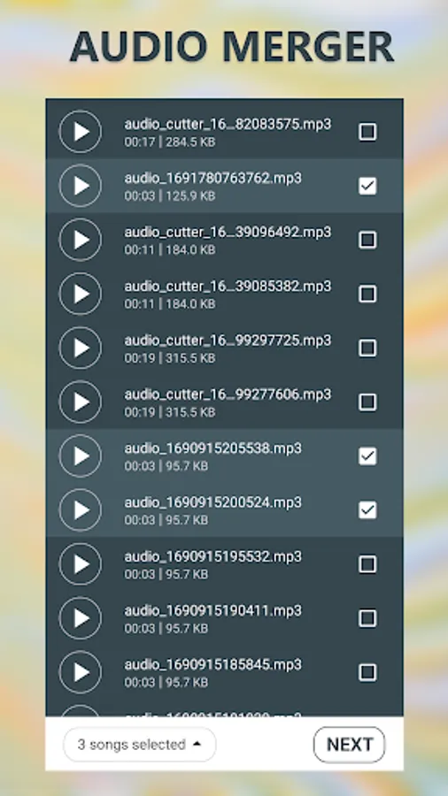• Select two or more songs by selecting Audio merger. change the order of the songs if you want and join the songs to get output.