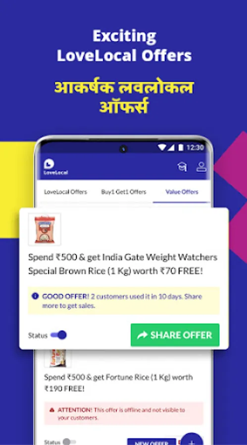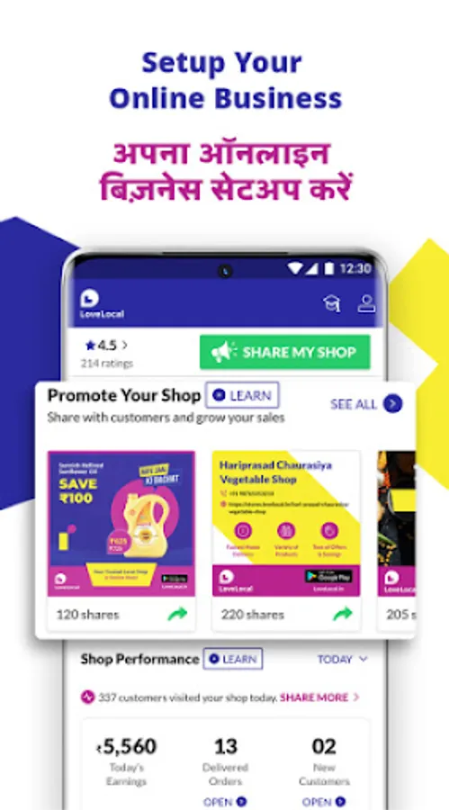 4. Share digital shop app link, offers, products, categories, digital store visiting card, Lovelocal funded offers with your customers to increase your online shop sales .