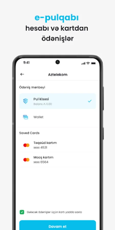 You can top up in cash via eManat terminals, and in the application with bank cards.