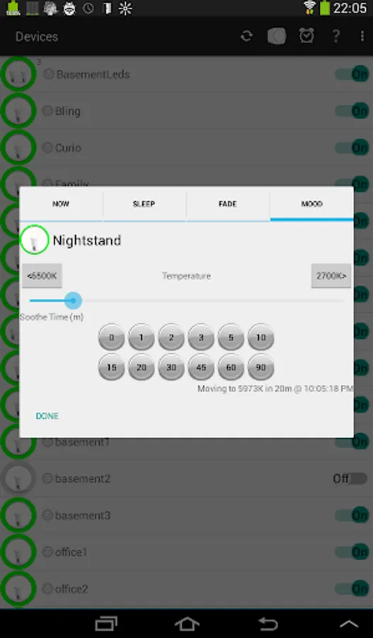 Once you've managed to have your LED bulbs recognized by your Wemo LINK using the Belkin app, close it for good and use this app to control all of your LED bulbs quickly and easily.