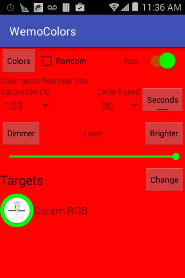Use the included WemoColors for continuous programmable color changes when using OSRAM RGB bulbs.