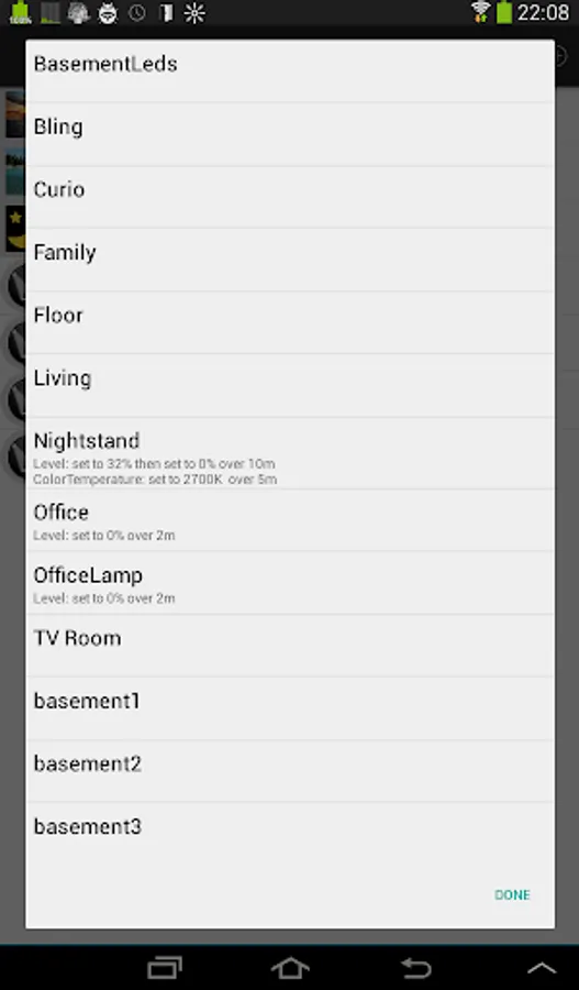 Presets (and Presets widgets) are single touch buttons or voice control commands to change your LEDs to match your mood or needs - more flexible than simple groups. Create a "Sleep" preset to set your bedroom bulbs to 50% dim and then to fade out over a few minutes. A "Night" preset can gently move all of your LEDs to a nightlight mode, or "Morning" to wake to a slow brightening, then turn off at daytime. A "Party" preset could turn them on bright, or a "Movie" preset could dim the lights for the show!