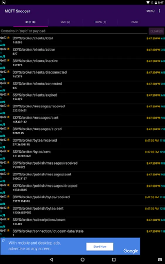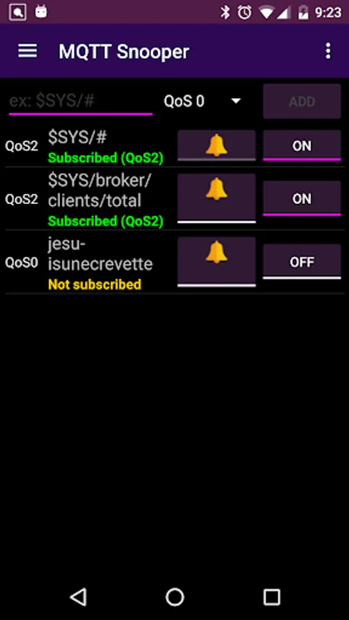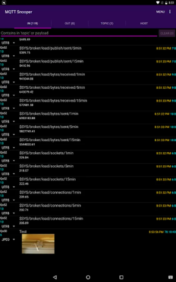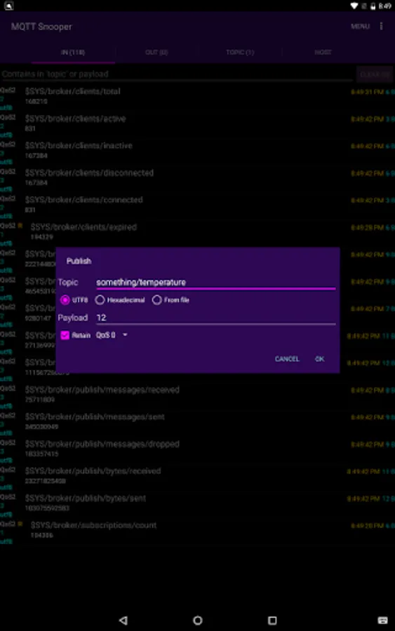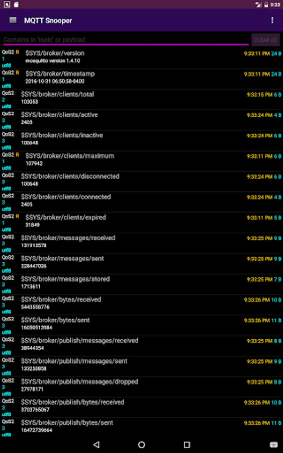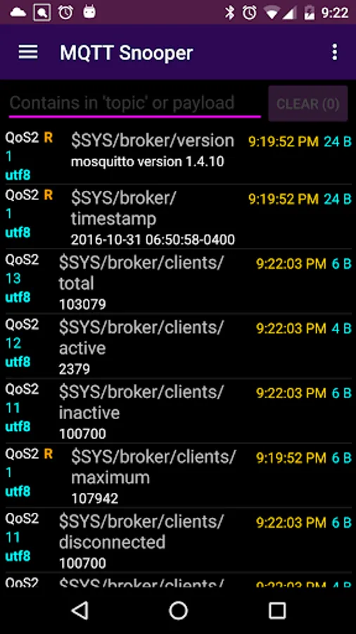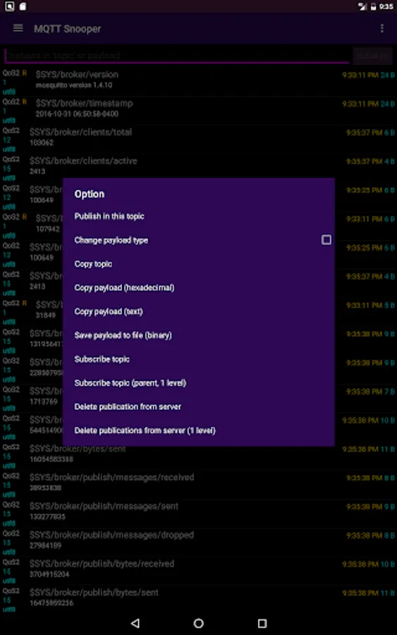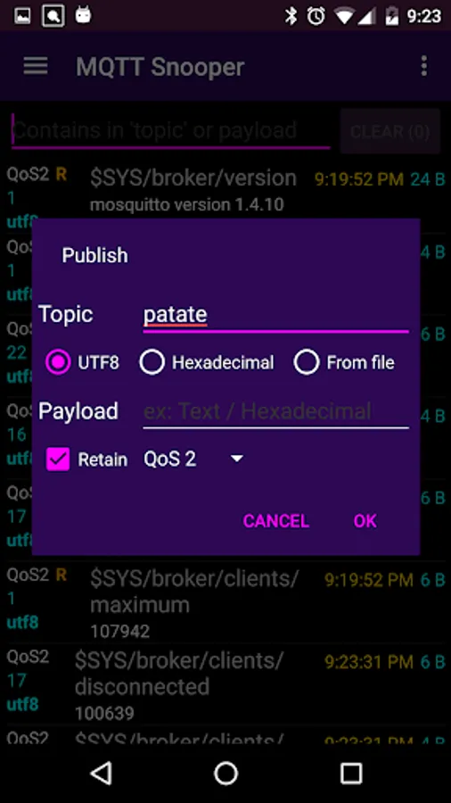 - Display publication in hexadecimal if the program guess that the payload is not UTF8