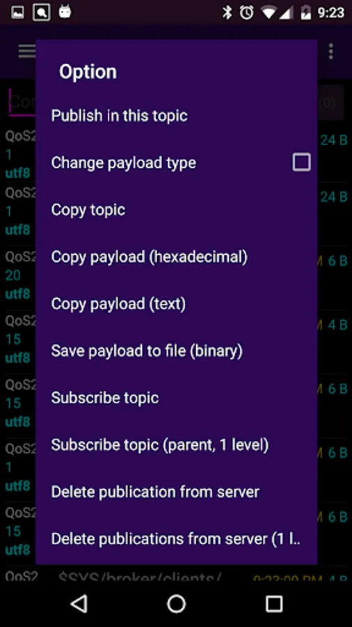 - Function related to publication : Delete one publication, delete all publication on one level, copy payload, view payload in hexadecimal