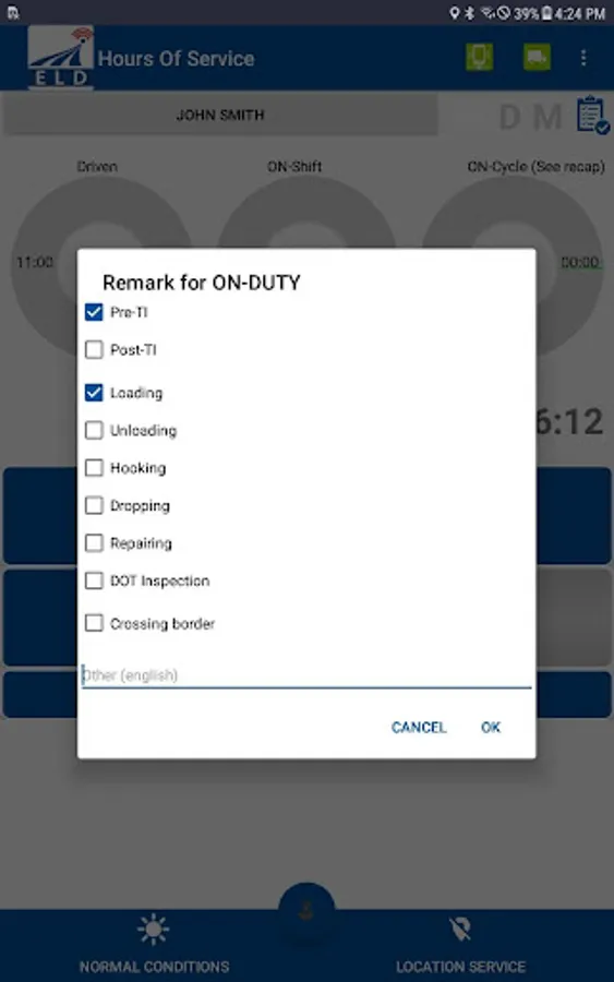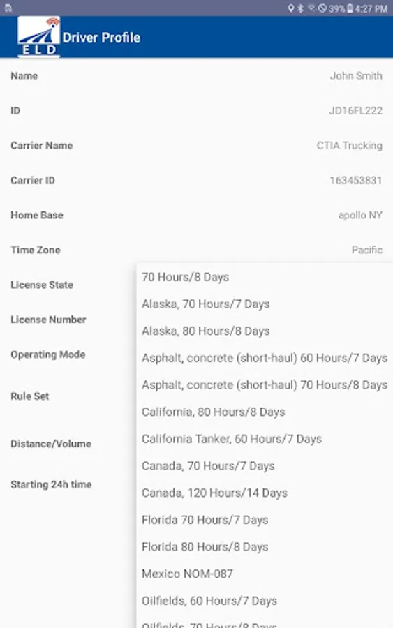 Compliant app to record driver duty status and meet the following regulations: