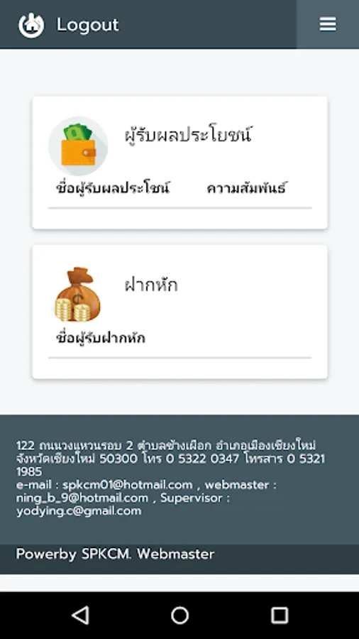 Is an application developed for the members. Cremation Society of Friends, teachers, Chiang Mai. To determine the set members. Including the payment of membership fees for each period.