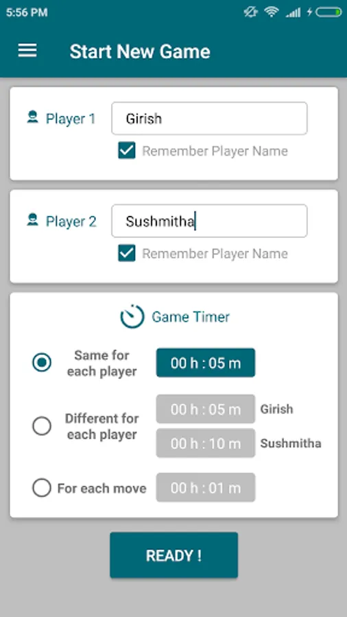 - Application will remember the player names for next use.
