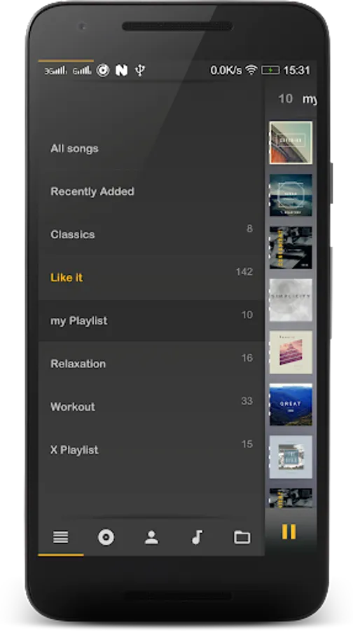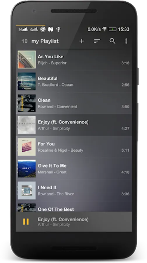 - Sorting (by title, album (+ album year), artist, duration, date added/modified)