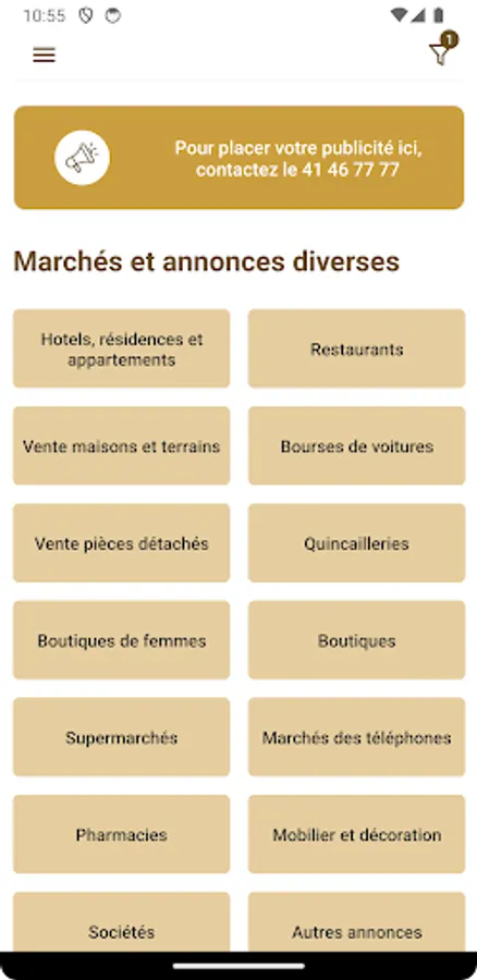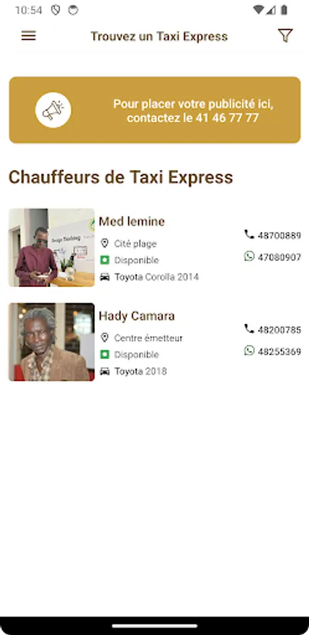 1 . The application displays a list of advertisers with detailed descriptions, images, phone contacts and others.