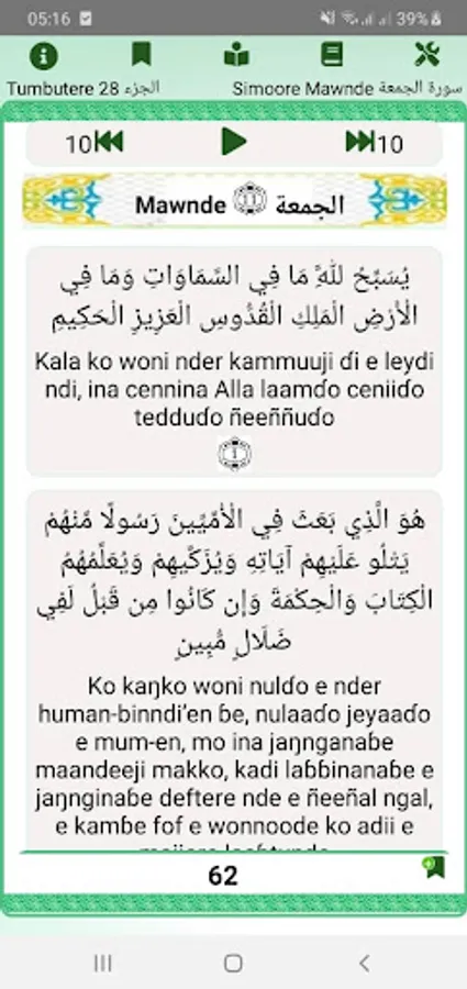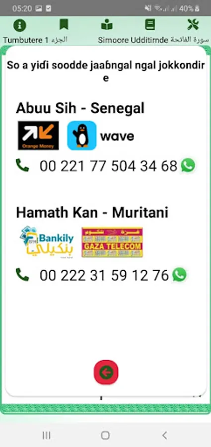 يستند هذا التطبيق على ترجمة القرآن الكريم للسيد أبو سي بلغة بولالفولف.