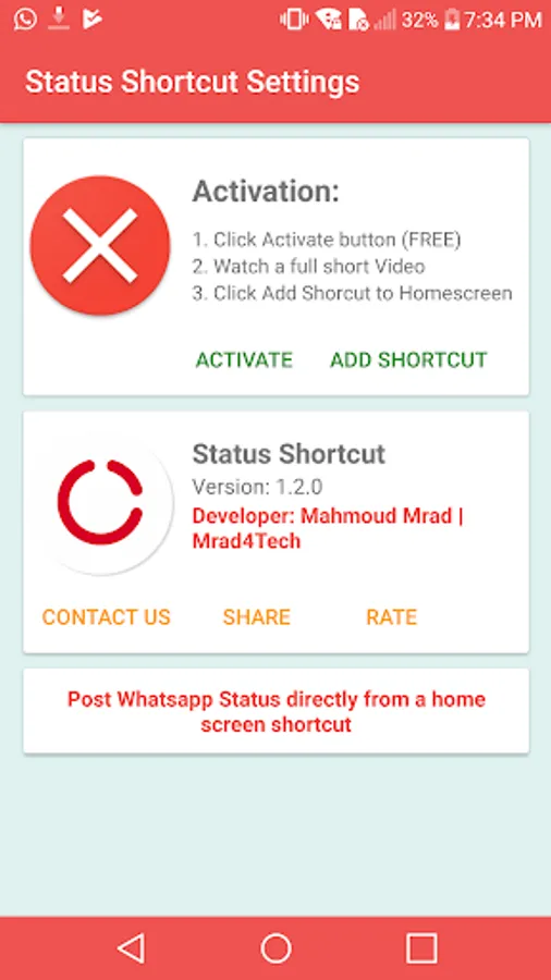 With Open Status in Whatsapp Status Shortcut for Whatsapp you can directly open the Status Camera of What sapp without launching the official app. Quickly post statuses On The Go .