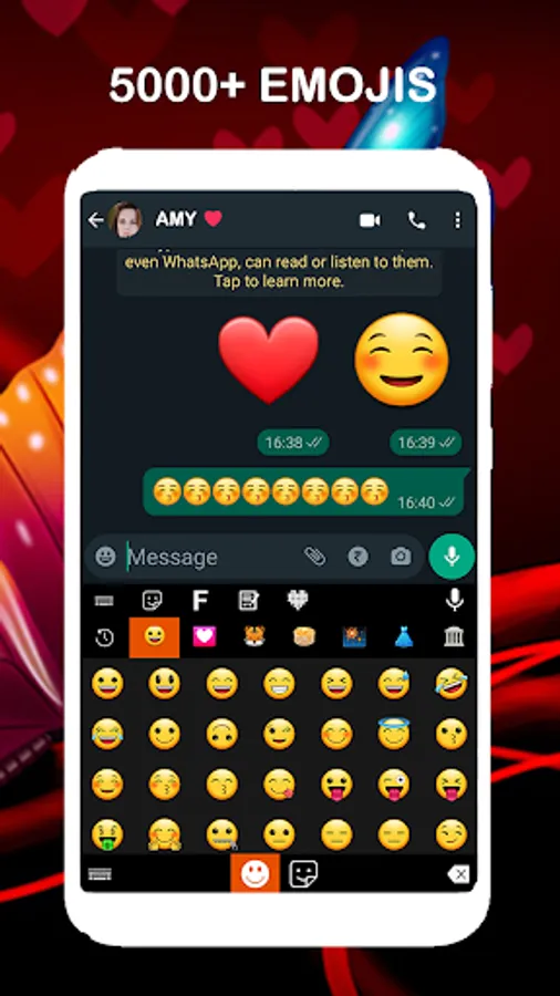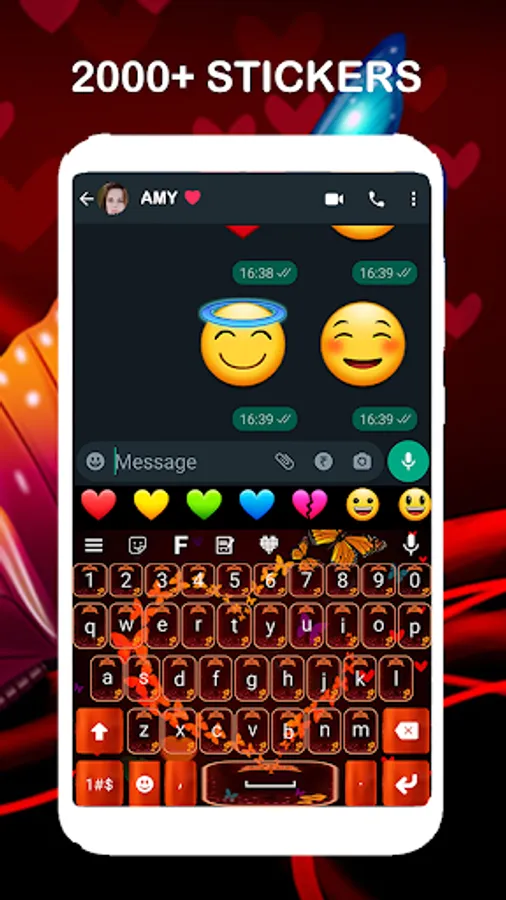 This theme keyboard provide you customize text sticker and different kind emojis.