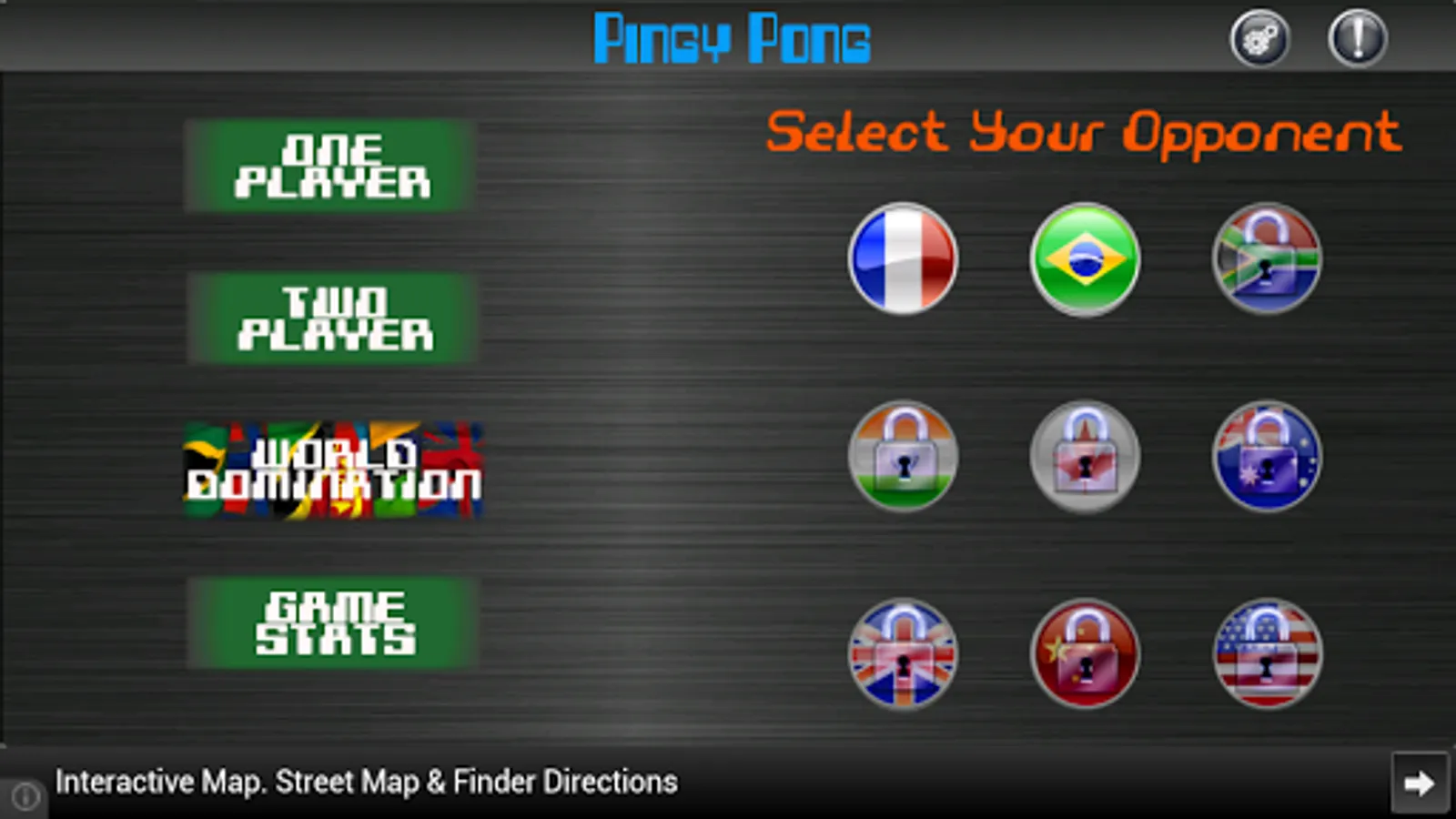 4) World Domination - Can you dominate the world of Ping Pong? Beat all 9 countries and tell the world about it.