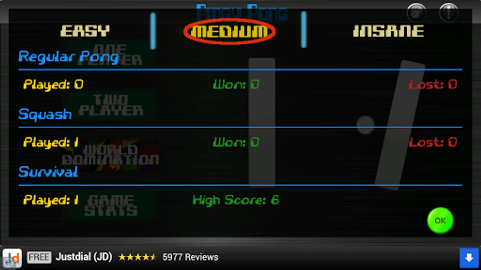 The game features 3 levels of difficulty. Easy is for beginners, Medium is where you should be and Insane is where you should never be!