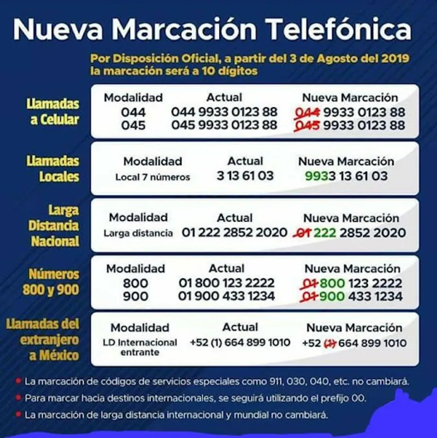 Your contacts who live in other parts of the Mexican Republic, and who you used to call in the 044, or 045, or 01 mode, that is, with more than ten digits (044-999-123-4567 or 01-800-123 -4321), they should get rid of those prefixes and be reduced to ten digits (999-123-4567 and 800-123-4321).