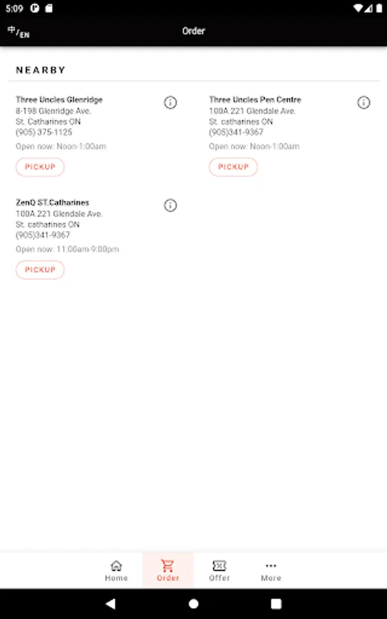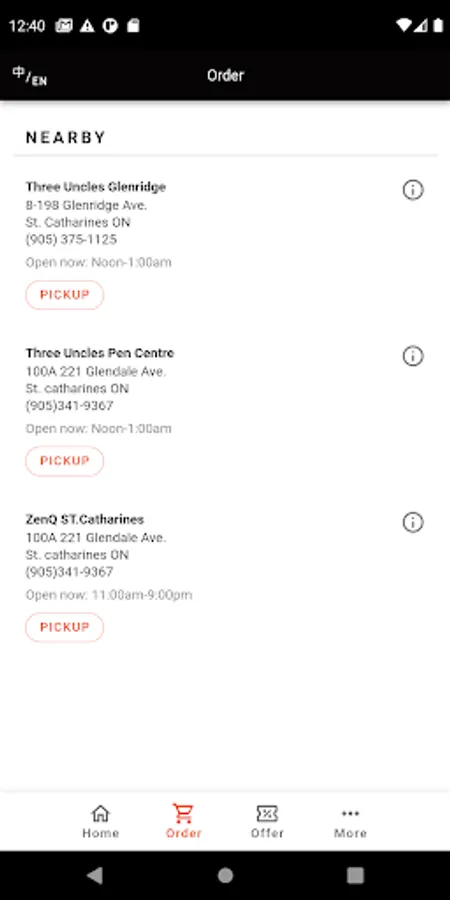 This app allows you to place an order in three uncles, ZenQ St. Catharines, check member's gift card, points transactions and update member information