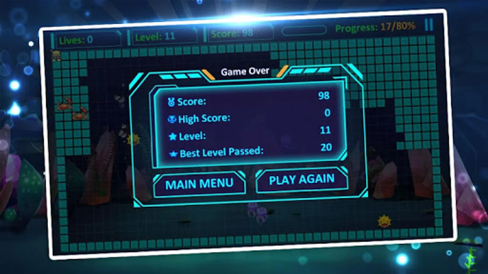 - Move player into the empty area and back to the wall to capture the area. Do not let the monsters touch super hero Fish or the wall that follows him.