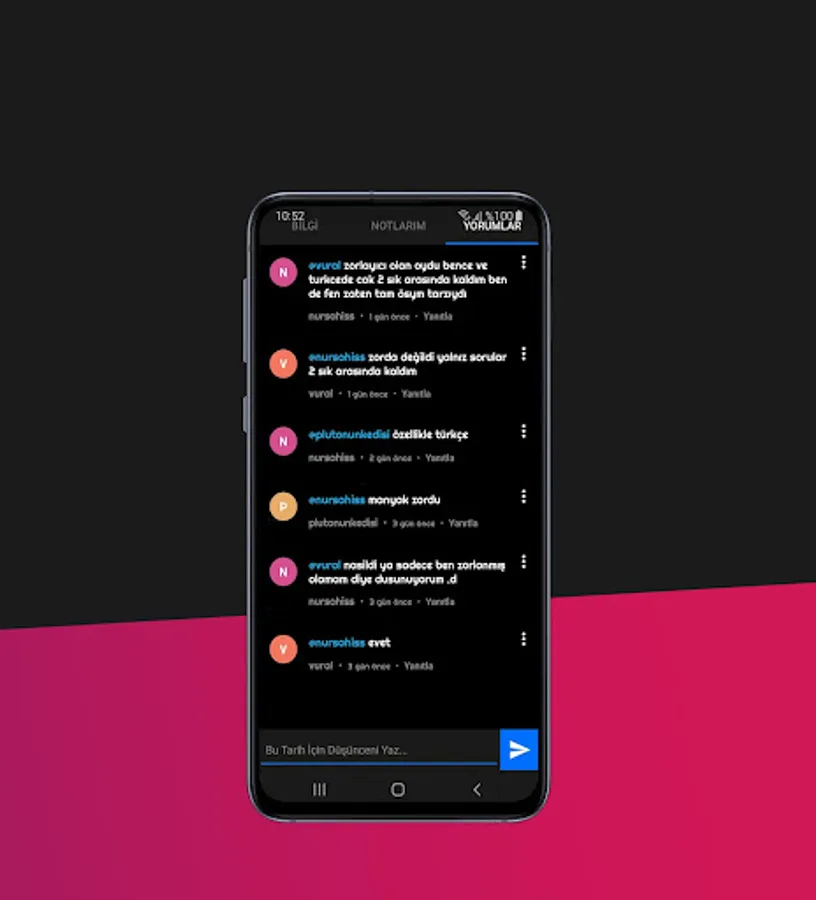 * There is a section that everyone can see, in the Anonymous tab, comments for that day can be shared. You can convey your thoughts to other users.