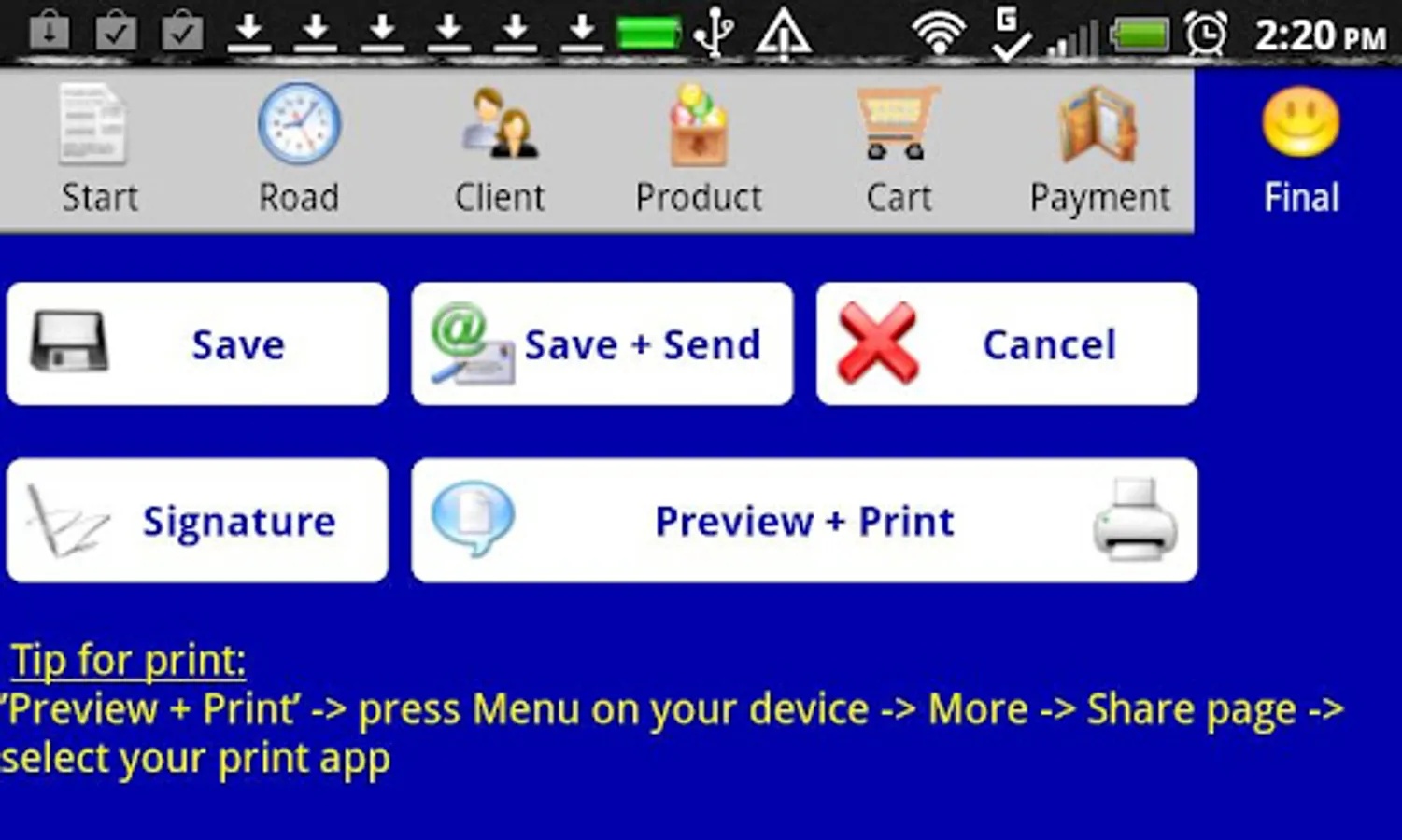 For Salespeople and Service providers: Create Invoice, Receipt, Estimate, Order, and Return on a road.