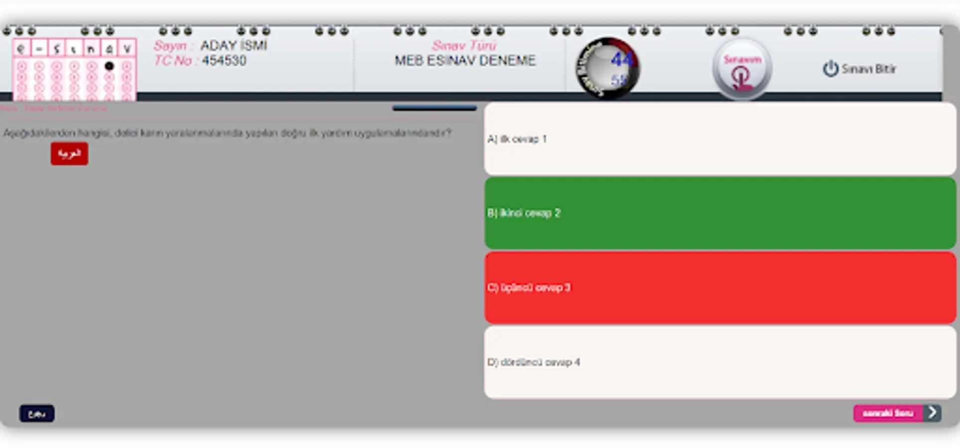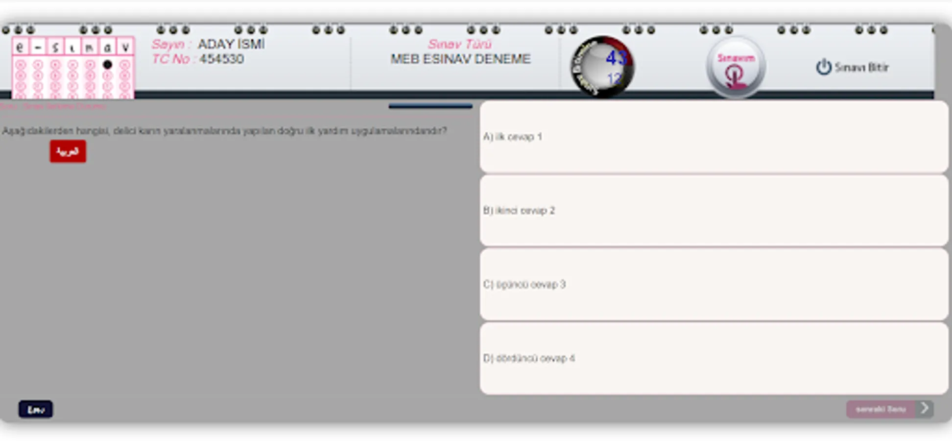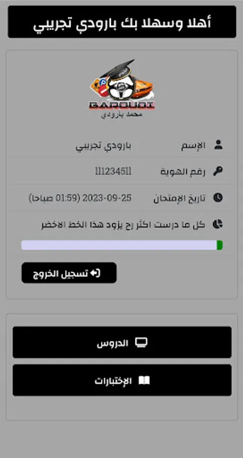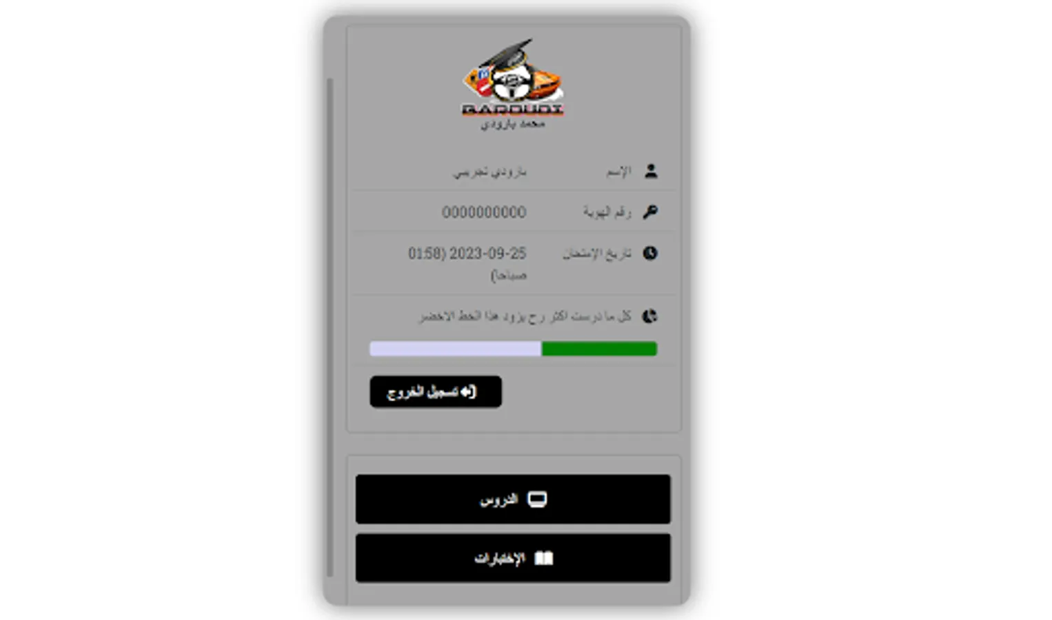 The Muhammad Baroudi program is a program that helps students understand the Turkish driver’s license curriculum, and it contains an interface that is %% identical to the real exam screen, which helps the student pass the exam with ease.