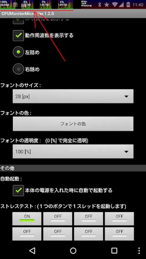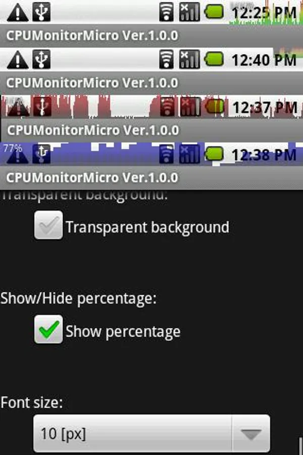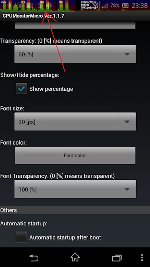 CPU Monitor Micro shows the CPU usage and operating frequency on top of other applications.