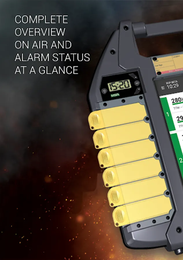 To unleash the full potential of the App, additional equipment such as the MSA HUB and telemetry enabled breathing apparatus in combination with the entry control board frame are necessary.