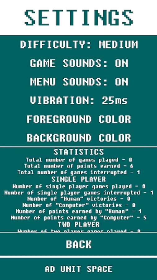 You can play this game with your friends on the same device, or you can play against your device. You can also improve your playing skills by using "Training Mode". You can also adjust the settings like sound, color and difficulty on the "Settings" page.