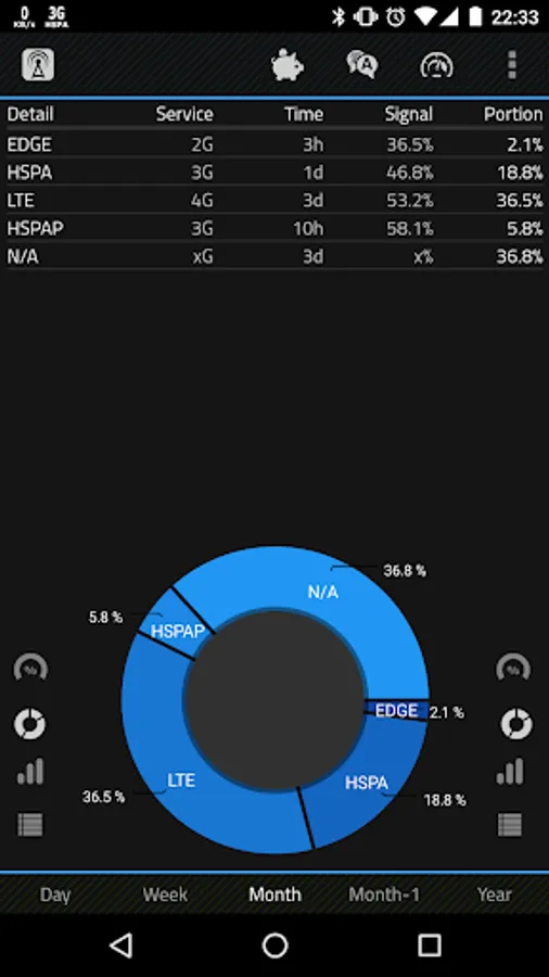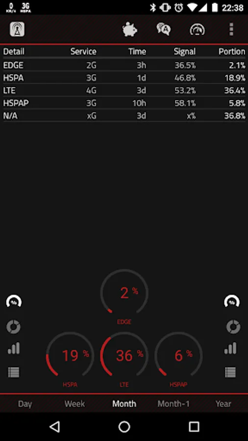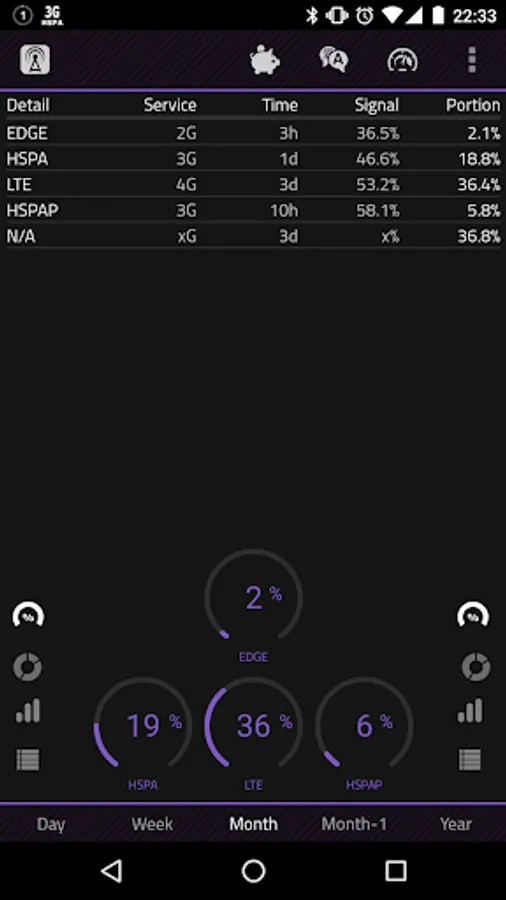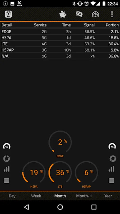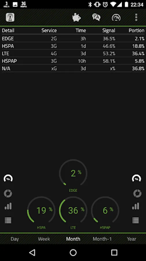 Free application that measure what technology (LTE, UMTS, EDGE, etc.) is used for internet connection and also allows fast switch between 2G/3G network.