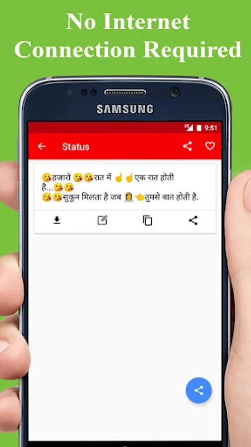 You can download the latest status in Hindi and English from an online database and read the status later. Best status 2022 is an offline app that updates automatically when the internet is connected.