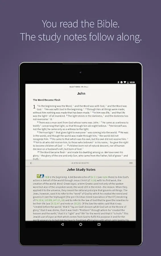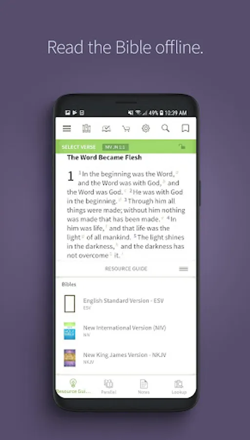Studying the Bible is the easiest it has ever been. Use the Study Center and Resource Guide tab to access any of the resources available in our app and read them right alongside the Bible of your choice. It even does all the hard work of tracking with you, verse by verse.