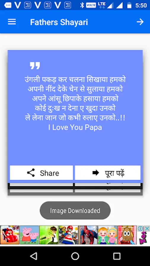 This app gives you the best shayari for dad in hindi without any Internet connection.
