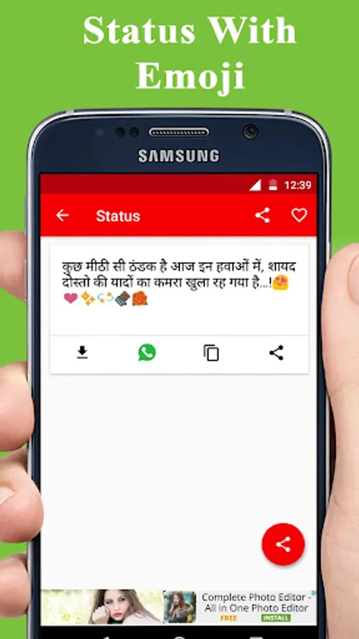 Very easy to use interface just swipe left and right to read the best status on friendship day in Hindi and easily set that as your WhatsApp status or FB status.
