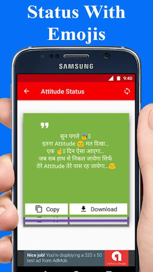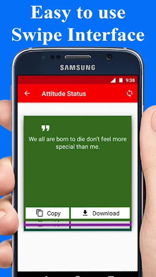 Very easy to use interface just swipe left and right to read the killer attitude status for girls and easily set that as your WhatsApp status or FB status.