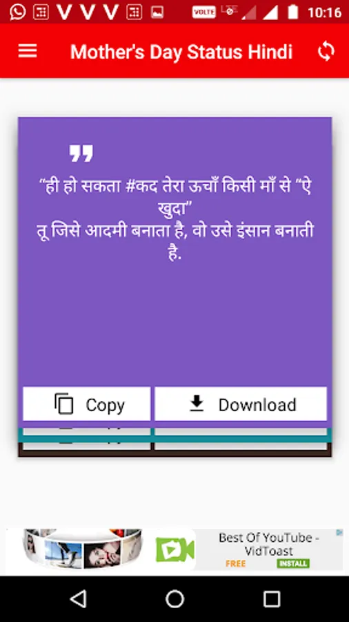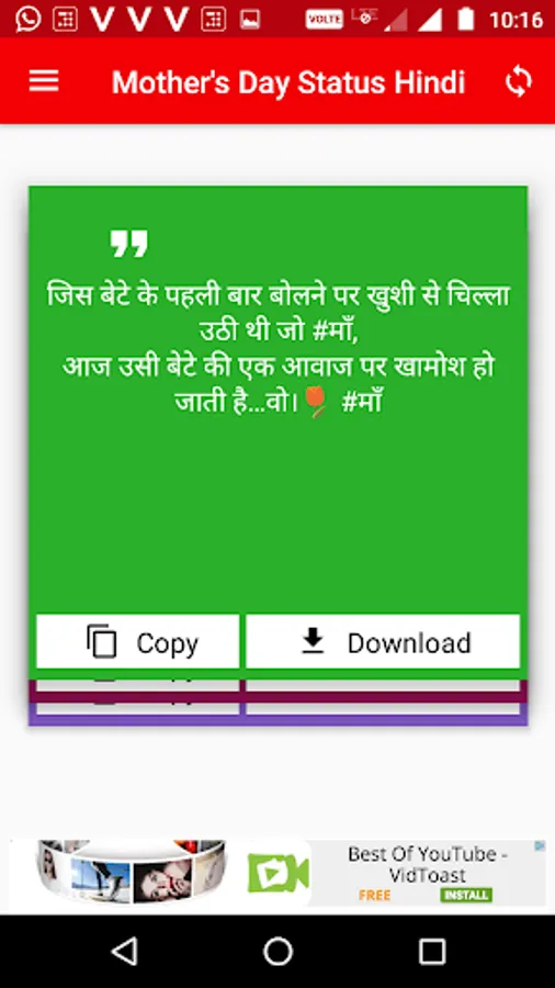 You can download latest maa quotes in hindi from online database and read the hindi status later.