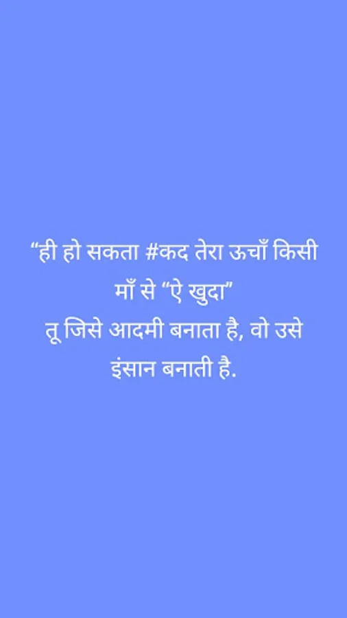 This app brings you the best status for motherโs in Hindi for 2021. These short status for mother are Hindi msgs which can be sent as an SMS or can be set as a WhatsApp status or it can also be used as a new WhatsApp image status.
